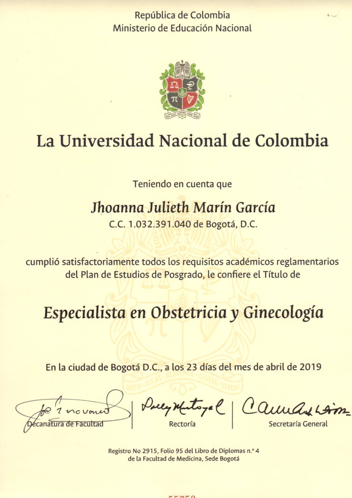 Soy Ginecóloga y Obstetra egresada de la Universidad Nacional de Colombia, con una visión integral de la salud femenina. Mi enfoque combina la medicina convencional de alta complejidad con los beneficios de la Medicina Tradicional China y la Acupuntura, tras cursar mi Maestría en Medicina Alternativa en la misma institución.